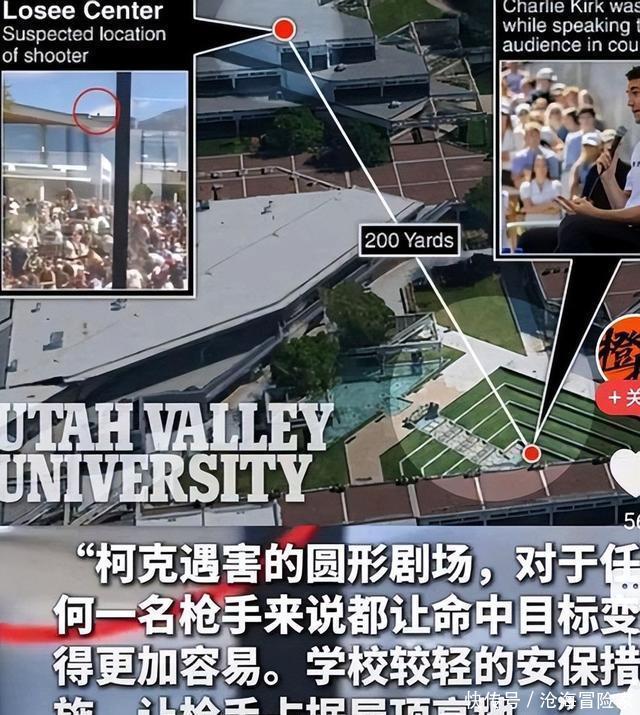 距离柯克演讲台约200米外的大楼屋顶。 当柯克正在回答,如何看待“过去十年美国大规模枪击案数量”时, 杀手叩响了扳机,子弹精准击中其颈部, 在3000多名现场观众的目睹之下,让柯克这位坚定不移的持枪拥护者,品尝了被枪击的滋味!
